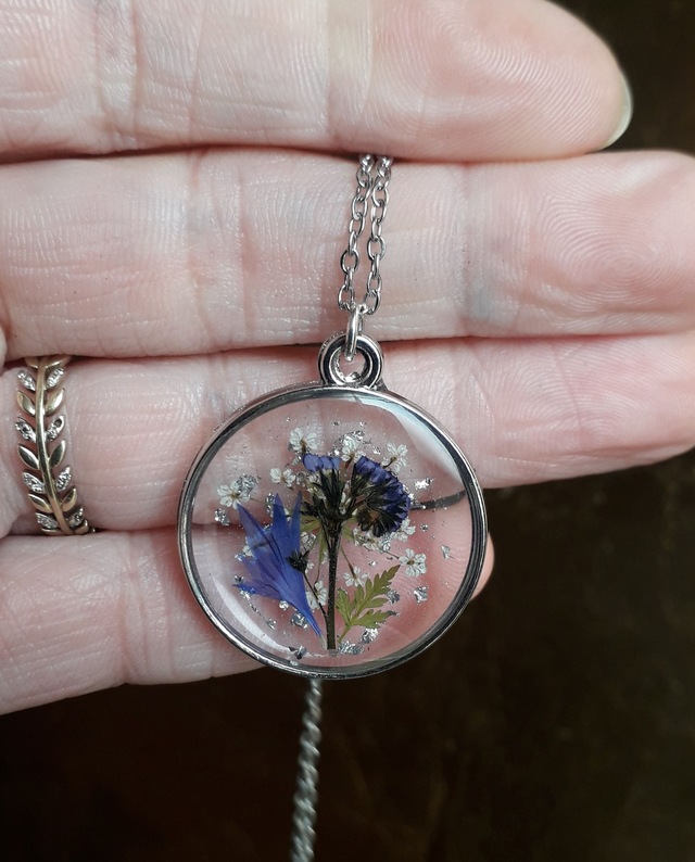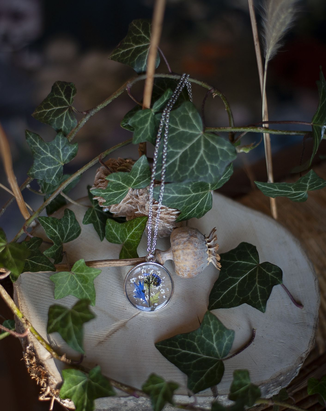 - Matériaux : Fleurs véritables, Résine, Acier inoxydable